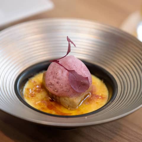 温度卵 シャンピニョン ポルチーニ茸のソース