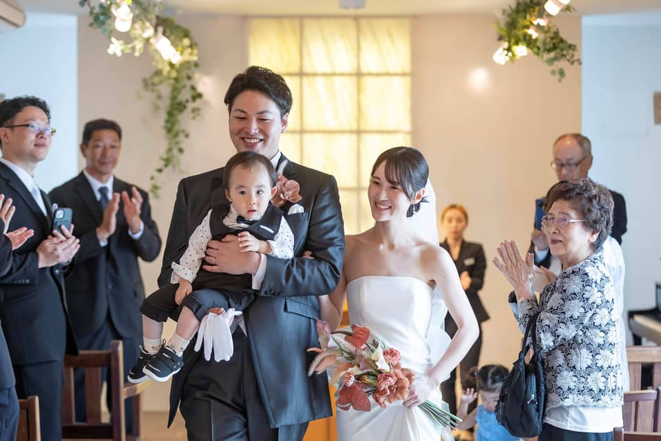 お子様が歩けるようになるのを待って迎えた私たちの結婚式は、4世代がそろう特別な一日になりました。小さな足で一生懸命歩く姿を、両親も祖父母も温かく見守ってくれて、その光景に胸がいっぱいに。受け継がれてきた家族のつながりと、これから続いていく未来を強く実感できました。みんなで笑い合い、感謝と喜びを分かち合えた、かけがえのない時間になりました。